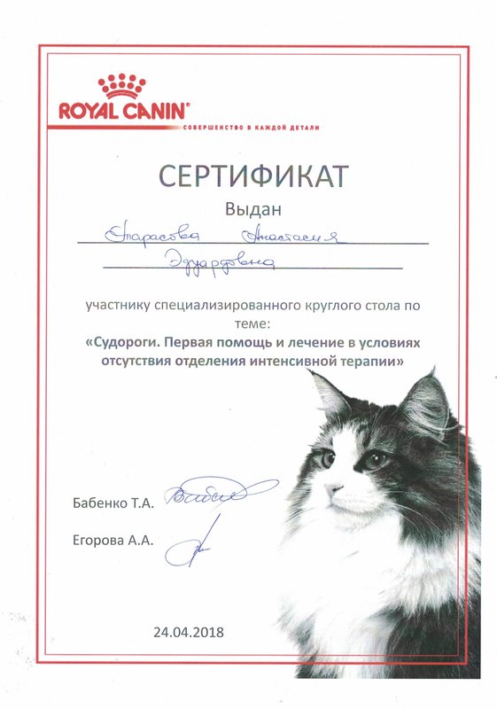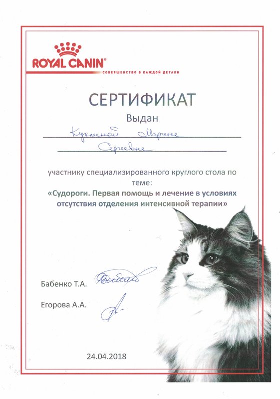 Врачи в центре квалифицированные, хорошо обращались с питомцем. Врач мне написал рецепт с медикаментозными назначениями для зубов кошки.